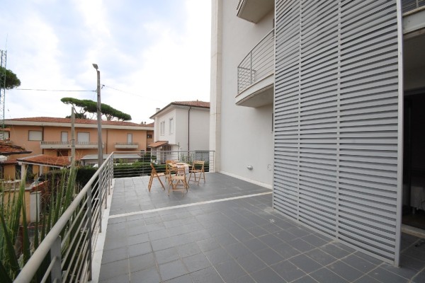 Marina di Pietrasanta località Fiumetto, proponiamo appartamento posto al primo piano di un piccolo stabile condominiale, collocato a due passi dal mare. L'immobile è stato costruito nel 2006, e si presenta in ottime condizioni di manutenzione, al suo interno è presente una zona giorno con angolo cottura che affaccia su una piccola terrazza, la prima parte si completa con una camera ed un bagno; proseguendo nella zona notte troviamo due camere da letto ed il bagno principale. La proprietà è dotata di un plus unico, una terrazza di circa 30 mq con vista sulle Apuane. Lo stabile dispone sia di scale che di un comodo ascensore.