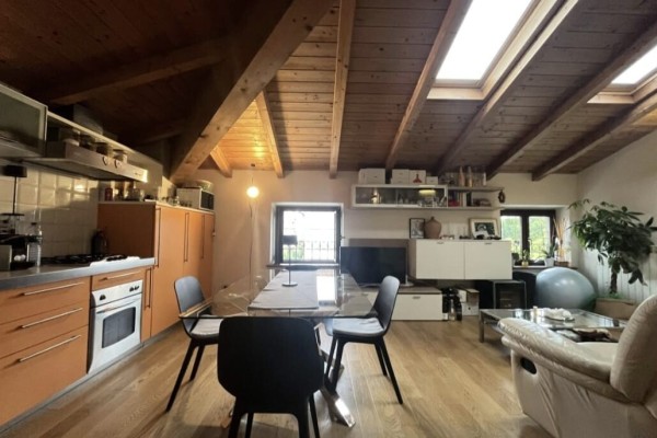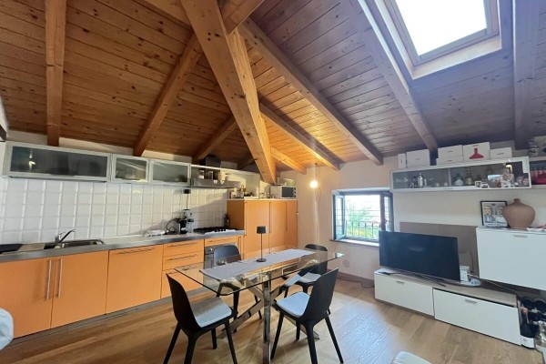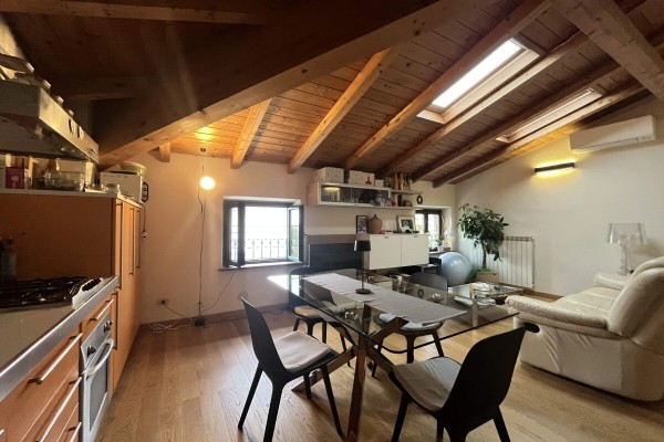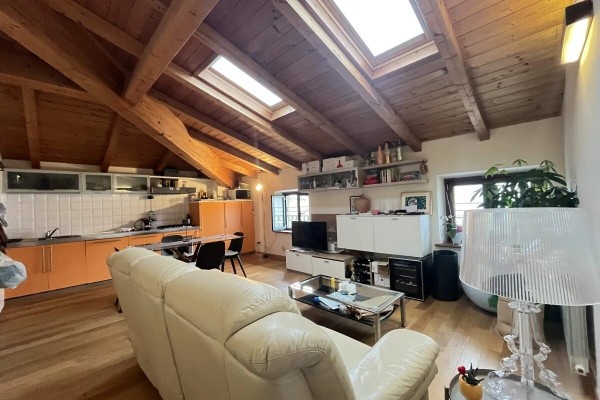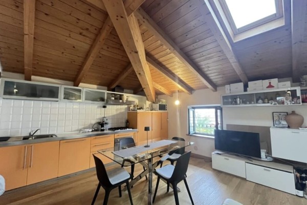 Zona Living: Ingresso su un ampio soggiorno con angolo cottura, un open-space accogliente e ideale per la vita quotidiana o per ricevere ospiti.