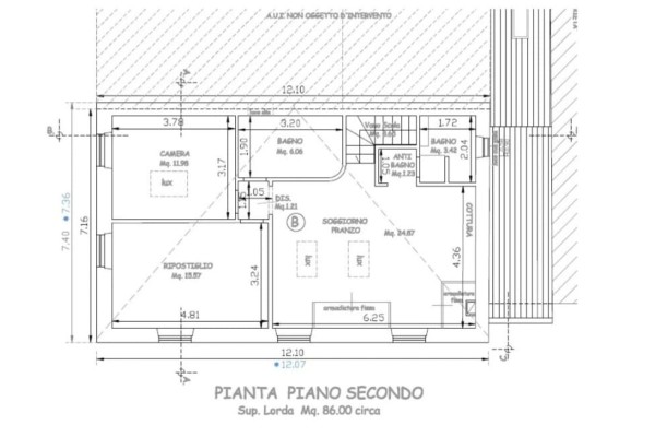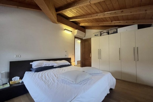 Zona Notte Funzionale: camera matrimoniale ampia, vano accatastato come ripostiglio ma che può essere tranquillamente usato come camera o come studio grazie alle sue generose dimensioni.